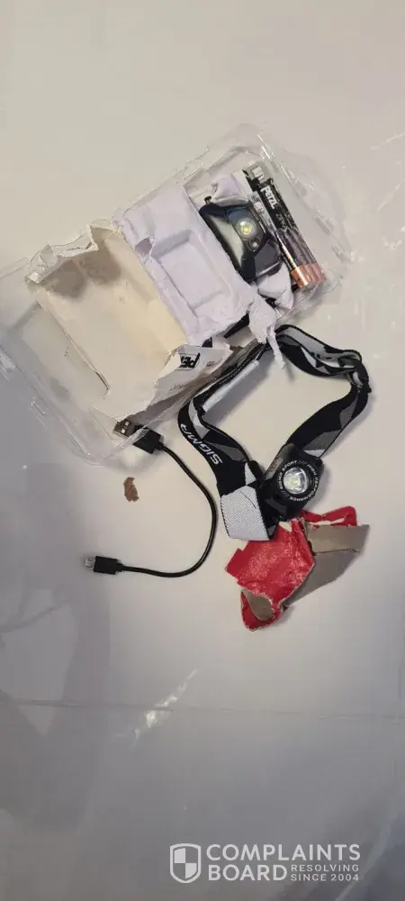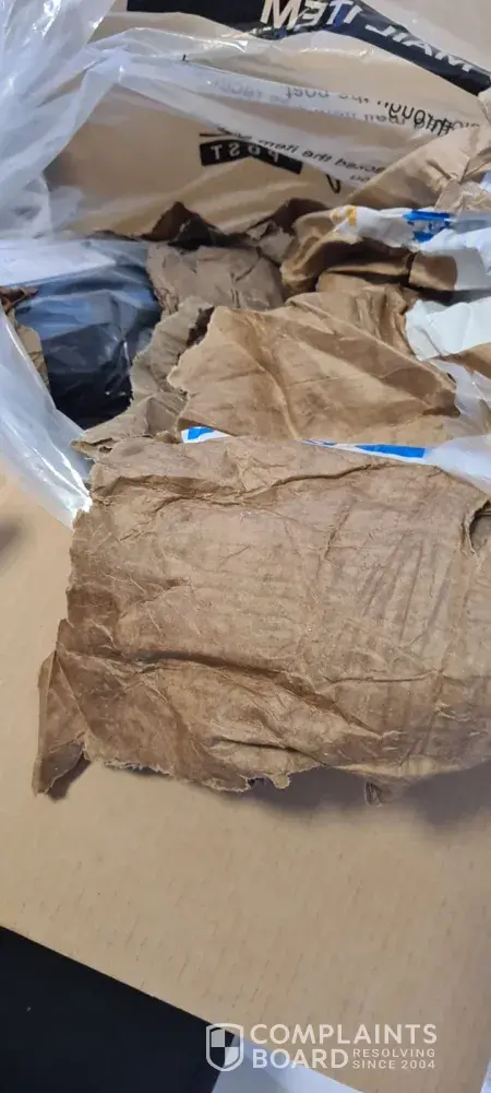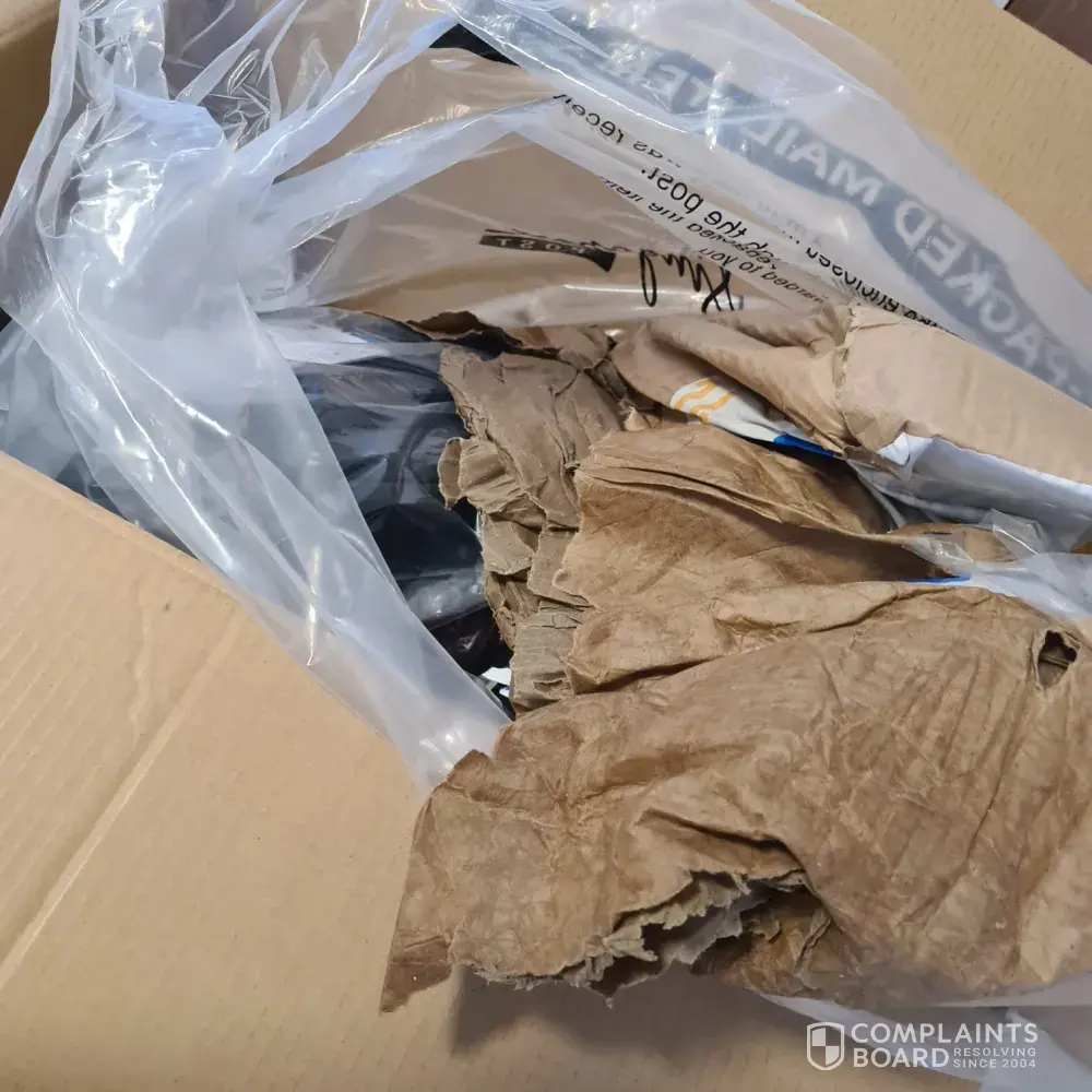 I had 13 items inside, and all of them are wet, smelly, and the packaging, manuals, fell apart at touch! it was obvious that the whole package was left in the rain or have at least spent a long time in wet conditions for it to be in such a sorry state. I had a mix of items, the soft goods(bags) were thankfully not torn, but stank even after i have washed them, which i had to, as the paper and packaging from the other contents had became pulp and stuck to the bags. The electronics, some of them could not be powered up, and those that could, i dread to think that they have been contaminated internally and it will be a matter of time before it will stop working.