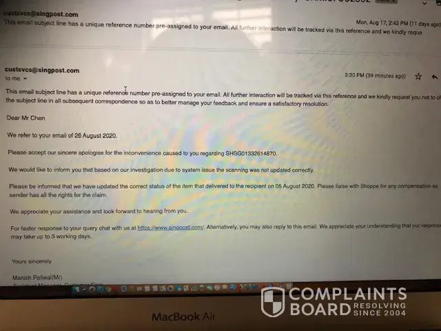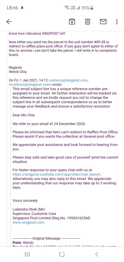 Last but not least, I also learned online I am not the only facing this kind of issue. Hope Singpost/Speedpost can help resolve this issue the soonest possible.