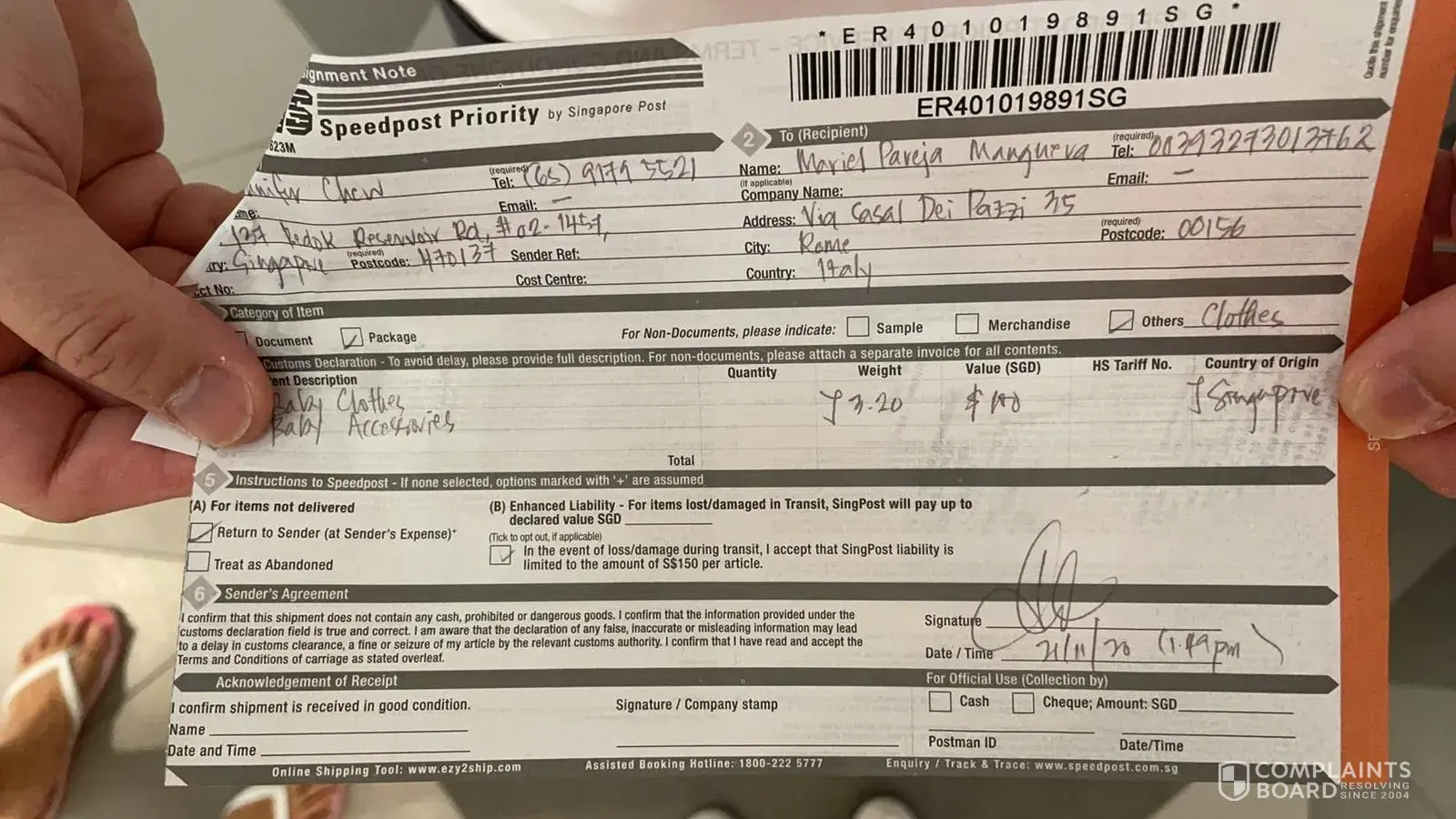 I sent a package of used baby clothes to Rome, Italy last Nov 2020. However after a month of no news from either Singpost or the counter part in Italy, my friend in Italy advised me that the items were returned back to Singapore due to incorrect address & incorrect contact, which was not the case. Address is correct as well as the contact number is correct. I reached out to Singpost, and they asked for all details, which I've given. From Jan'21, we've been exchanging emails as they cannot track the items. ER401019891SG, the funny thing, they claimed that Singpost returned it to me as the address was incorrect. I did not receive the package back and when I asked for refund, Singapost did not respond anymore. The service was horrible, as they claim they need to have receipt of those baby clothes to assist me further. But then after explaining that those are used baby clothes and some new items no receipt, I just want to know where my package sent. No response from Singpost, hence, I would like to raise a case on this. Please assist. Thank you.