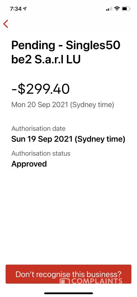 I have notice on my bank account statement that a company Singles50 Lu Pos. Which states unknown category sounds very suspicious (scam) and have withdrawn $99.80 pending on the 19/08/2021 from my account. I have not joined this dating site and demand the full amount transferred back into my account immediately including a full investigation if not I will be contacting the authorities.
