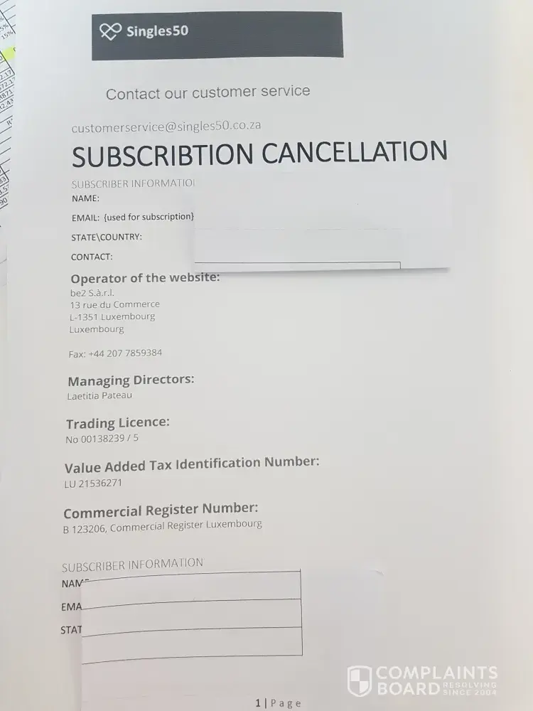 On 29 Oct 2021 I joined the singles50 site and am attempting to cancel the membership since 30 October 2021.
