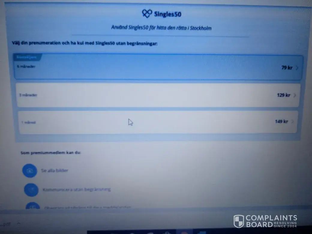 My desire now is that Singles50.se proceed with the full cancellation of the this subscription because I don´t trust on this way of doing business.