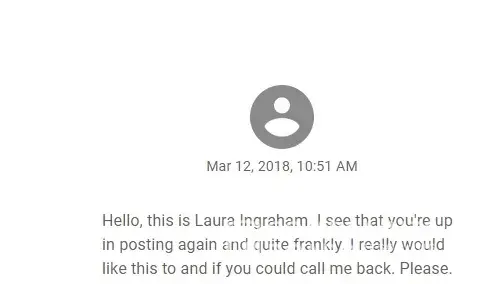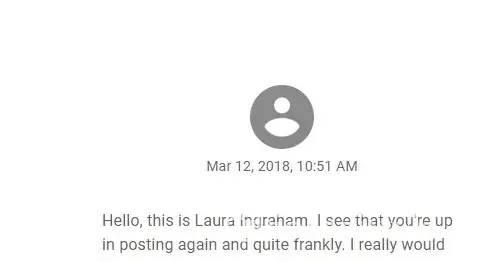 After Laura Ingraham filed criminal charges against me in 2016, she called me on my cell phone on March 14, 2018 looking for money to make the charges go away.