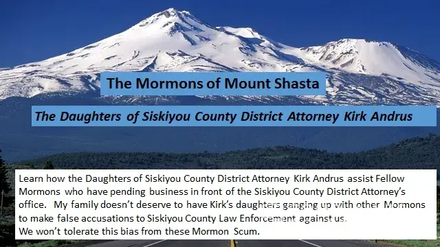 Learn about Mormon Extortion in Mount Shasta, while operating under the protection of Siskiyou County District Attorney Kirk Andrus: