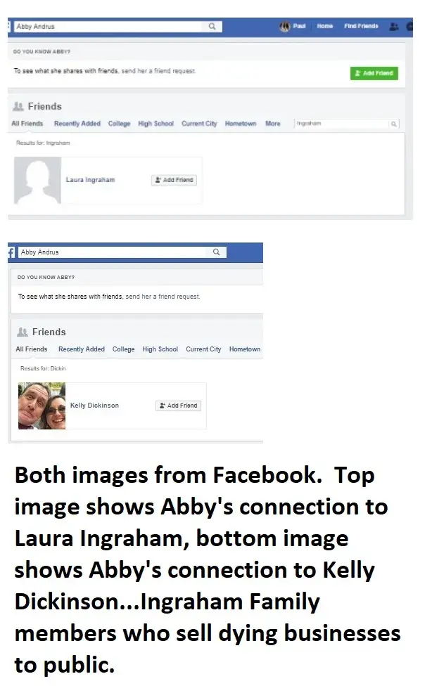 As victims of the Ingraham family, we protest the interference and connection of Adrienne Andrus in the false accusations against us.
