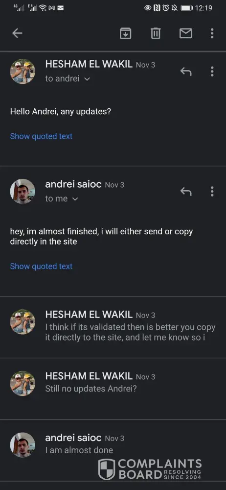 Please remove this comment, you wanted to much more done than the original contract. Its too bad, as you were also 100% refunded. But you know karma is a [censored]