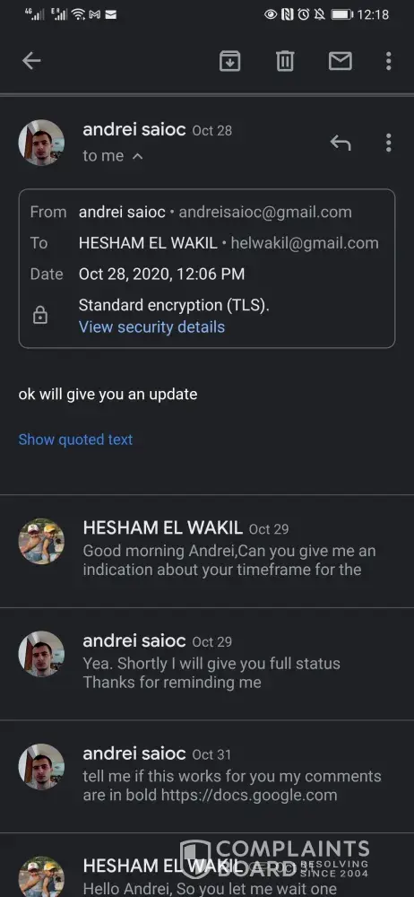 I don't have any complaint, things were great, trying to give out a good review to these guys
