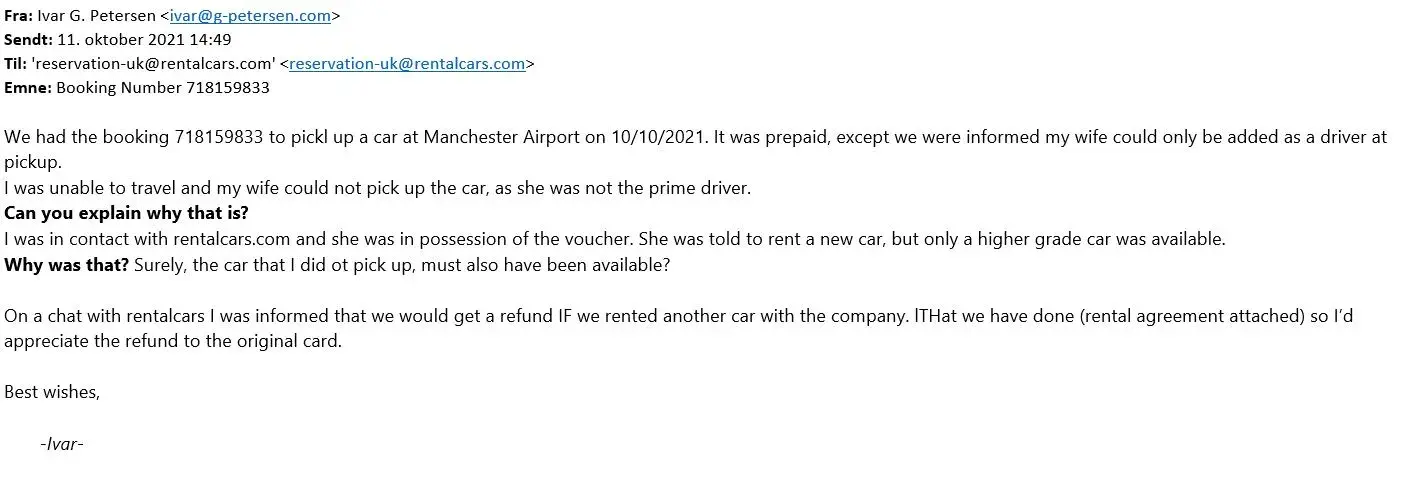 6. When I arrived in Ostersund, there was no car waiting for me even though my booking had been confirmed. The representative (after phone calls) eventually arrived.