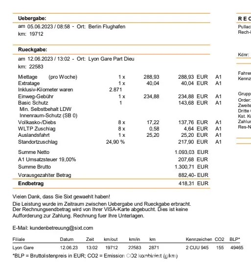 Sixt - overcharged 4