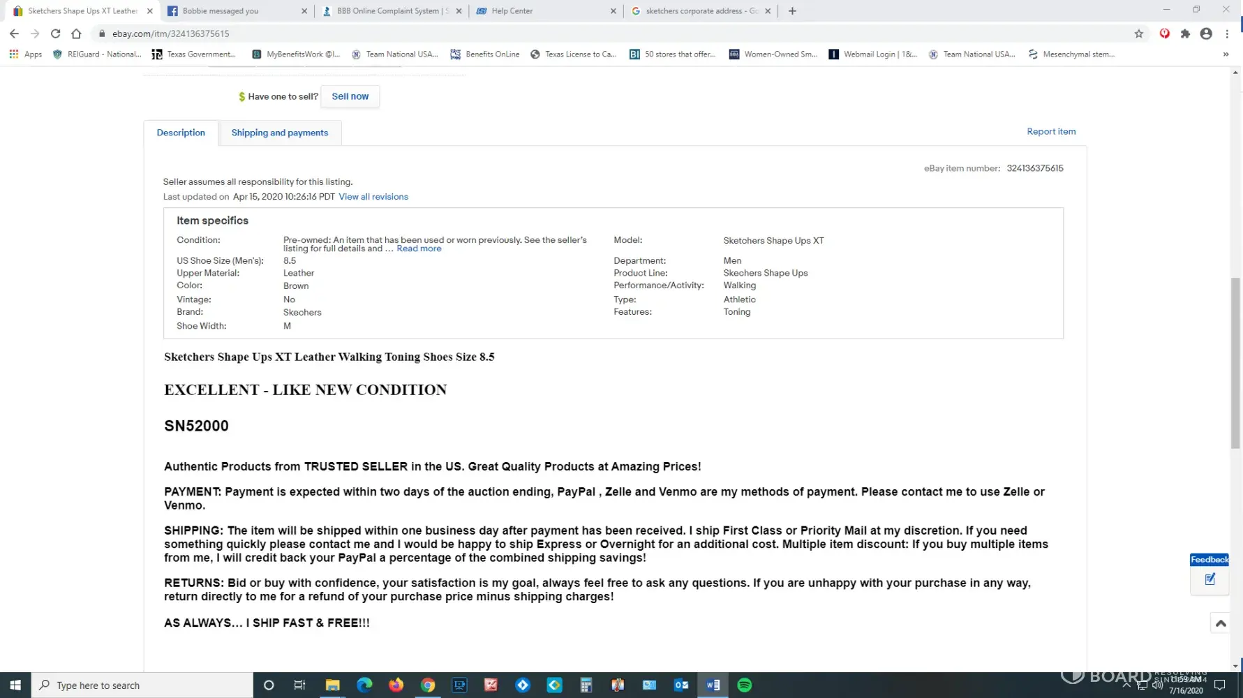 I bought a pair of Sketchers Shape-Ups for my husband. He tried them on, wore them around the house and then they disappeared into his closet, never to be worn again. When COVID hit, that gave us more time at home and he went through his closet and got a big pile of stuff to get rid of & the Sketchers were in the pile, still new in their box. It had been too long to take them back to the store and stores were all closed anyway so I sold them on eBay. The buyer sent a message when they received them telling me that they received them, wore them out to take a walk around the block and that the soul of the shoe just disintegrated and fell off. I contacted Sketchers and they refused to help with a replacement. Only offered a coupon for 30% off another pair. I will never buy Sketchers again. If they don't believe in their own product enough to stand behind the pair of shoes, why should I spend even 70% of my hard earned money to buy their cheaply made shoes again? Not to mention, I am not only out the original cost of the shoes but also selling fees, shipping fees & having to refund the buyer in full for selling a defective product.