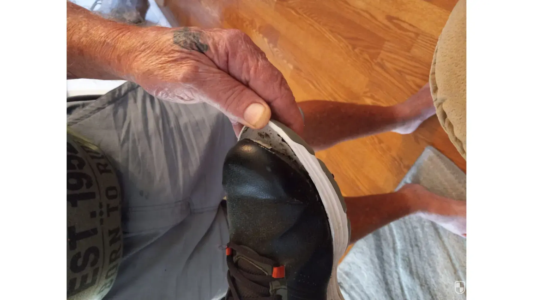 I am 77 only wear the sneaker indoors the black on the bottom of the heel peeled off like it was gum . I always buy Skechers but maybe no more . I thought I stepped in some gum but it was the black on the underside of the heel . speechless I have no idea what they used to make this shoe