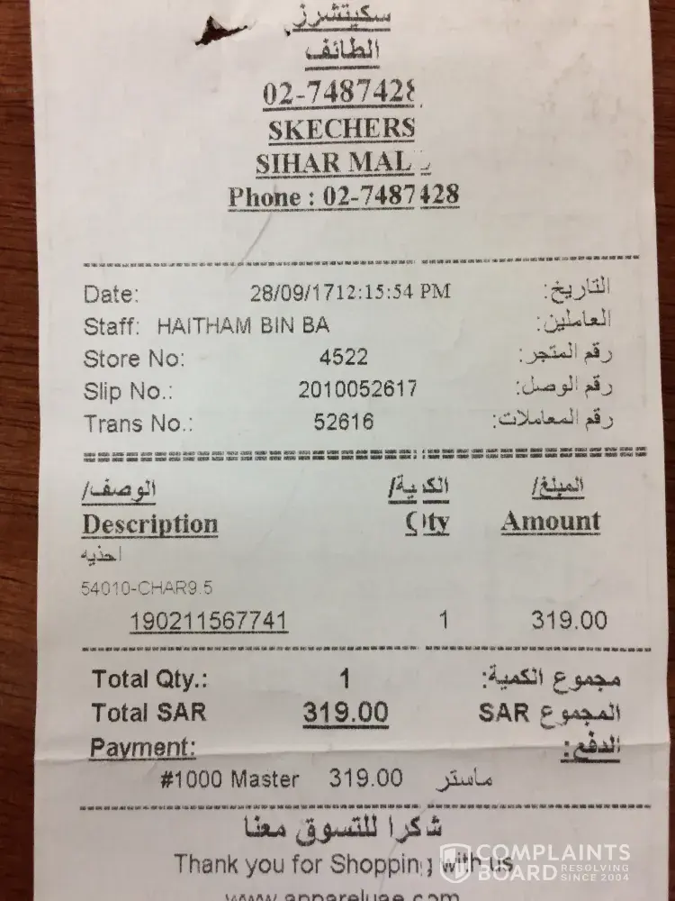 Being a first time customer of your company, the false commitment given by your executive leaving a very wrong impression on me about your brand and felt cheated by Skechers & forcing me to prefer other company over yours.