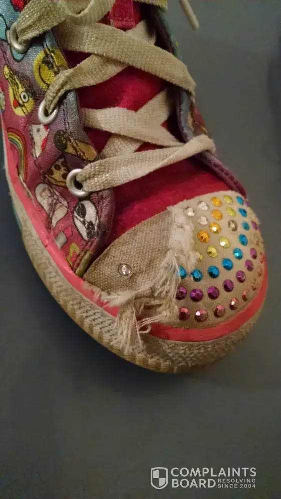 I bought my daughter a pair of sketchers emoji high tops at the beginning of the school year(September) and they are already ripping at the bend of the toe on one shoe. I bought them from Meijer. You can tell that the fabric is just cut off and not tucked under so it easily fraes. I've brought many pair of twinkle toes for her and I've never had this problem. I am very dissatisfied with these shoes. She doesn't wear them every day either. I paid $50 for these shoes and I am highly disappointed with the quality!