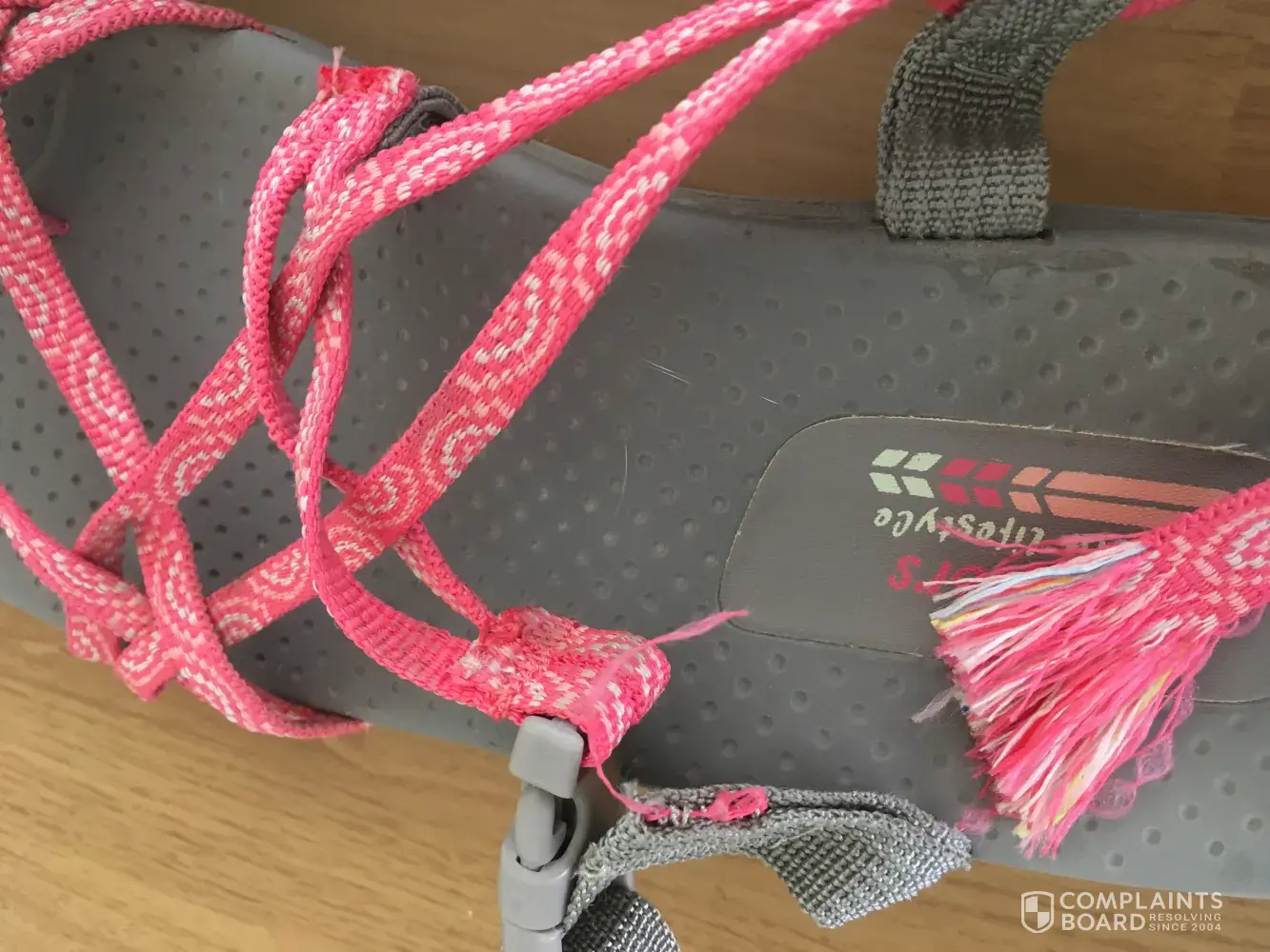 I purchased a pair of Sketchers (Rumblers -Wild Child)wedge sandals this summer to wear to work. After only a few times wearing them, the criss cross strap has broken off and tore away from the sandal. These were one of my favorite pairs of sandals and I'm very disappointed in this.