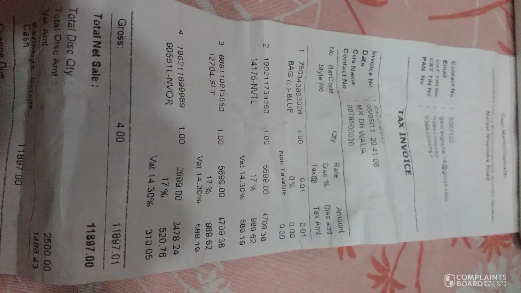 We purchased Shoes from very renowned brand Skecher shoes on Feb 26, 2017, costing Rs 5999 from " Skechers Retail Pvt Ltd" C-4 Trillium, Circular Road, basant Avenue, Amritsar, Punjab.