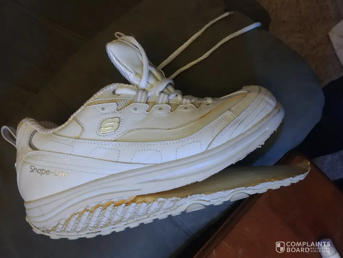 I know that these shoes are no longer manufactured but I purchased them while on holiday a few years back at a Skechers Store. I brought them home and put them in a cupboard that has no heat source and stored them. Recently I began walking to improve my health. I took these shoes from the cupboard and began using them in August 2018. I used these shoes in good weather and if the weather was inclement I would wear different shoes. I loved the feel of these shoes and the comfort.