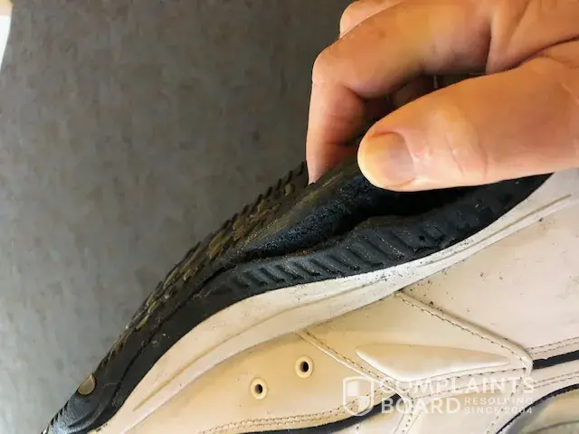 In January 2019 I was in Palm Springs and took these shoes with me. On January 16, 2019 I was at the Living Desert with my grand children and when I returned to our resort I felt there was something wrong with the shoes. I checked the shoes and found that the rubbers sole was separating from the upper on both shoes.