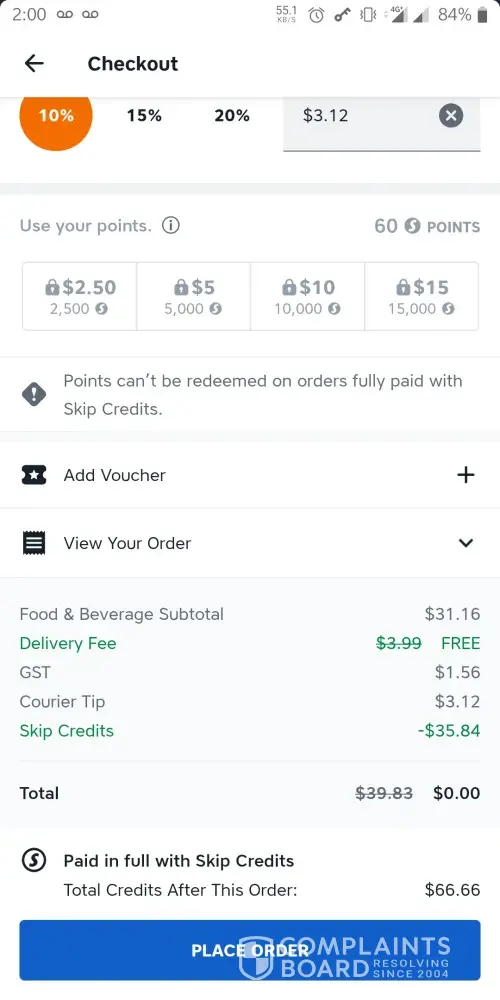 My sister recently gifted me $100 in SkiptheDishes Credit for my birthday to my Skip account. However, I found out very soon that I was not able to place any orders, no matter how many times I have tried (using cell 4G, Wifi, my computer, other devices).