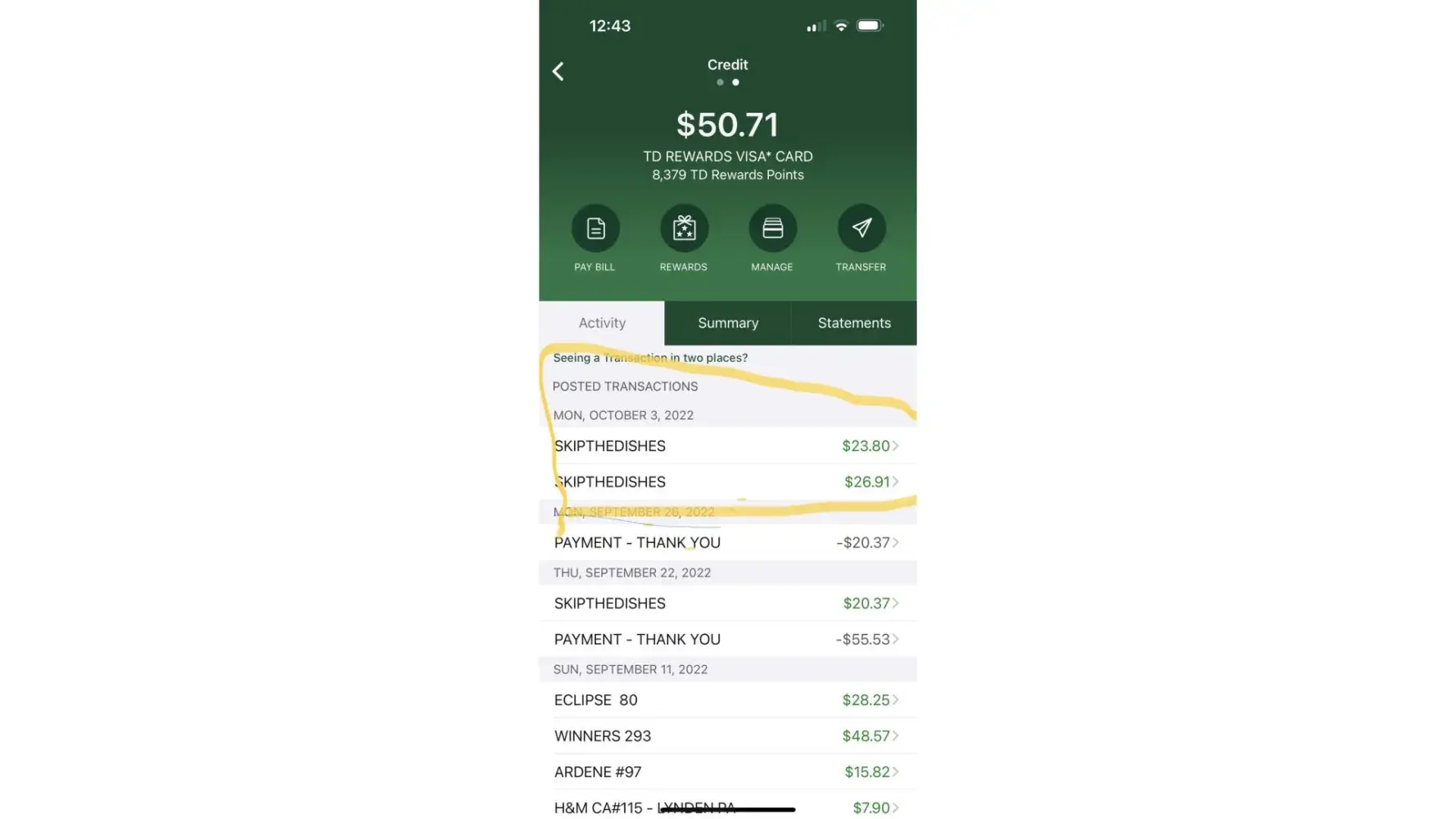 My cibc bank card was used in 2021 in the month of april, may and june. Someone used my bank card information and charged over $2000.00 in skip the dishes. I have contacted cibc bank several times and no body will help me with this. I stayed at the big 6 motel in sannich bc and can only think that is were my bank card was comprimised but my bank will not even look into this.
