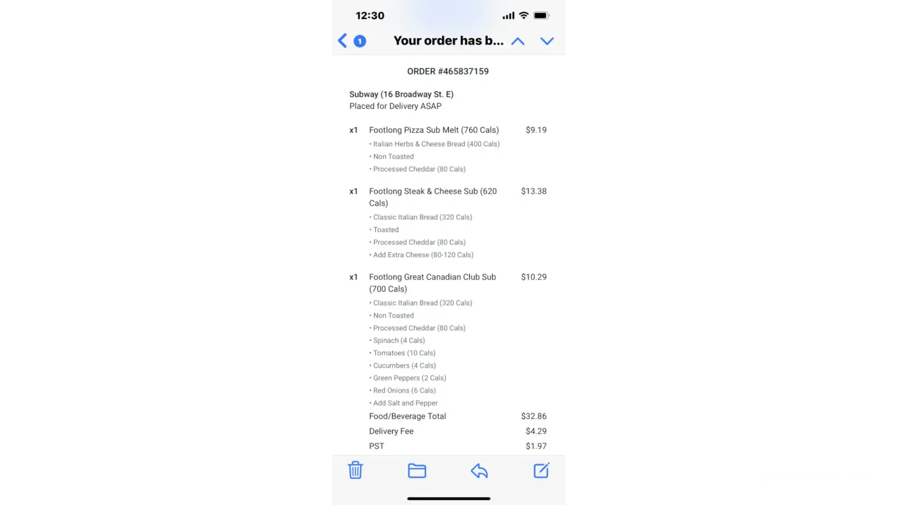 Sept 28, 22 I aplaced an order to Ski the dishes in Burlington, ON Burger king was order and the total amount was