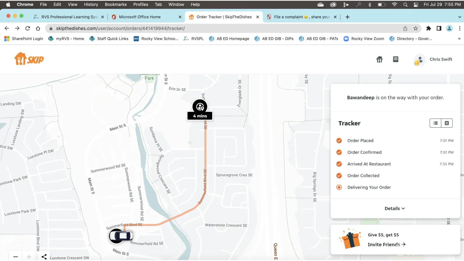 SkipTheDishes, Winnipeg on July 25, 2022 and never visited Winnipeg at this time.