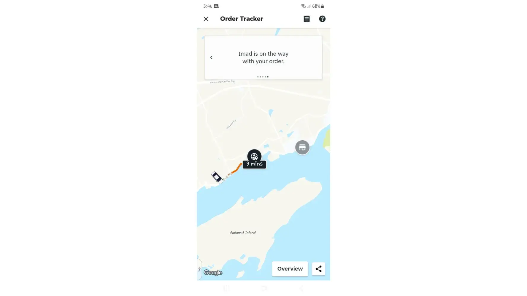Picture included shows restaurant (grey), my house (black), how far PAST address driver went