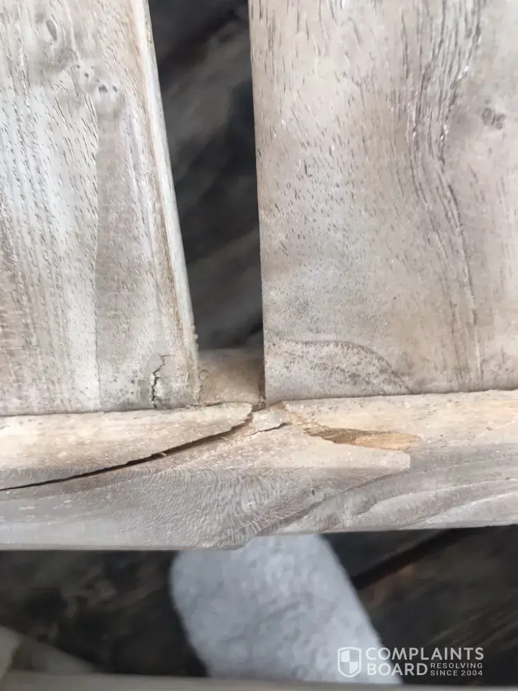 I bought 2 EXTERNAL garden armchairs at 190€ each advertised as FOR the GARDEN. After less than 1 year one of them has broken due to bad quality wood in 2 places. Their reaction? To immediately blame me and try and tell me that they are not guaranteed as they were exposed to the weather.