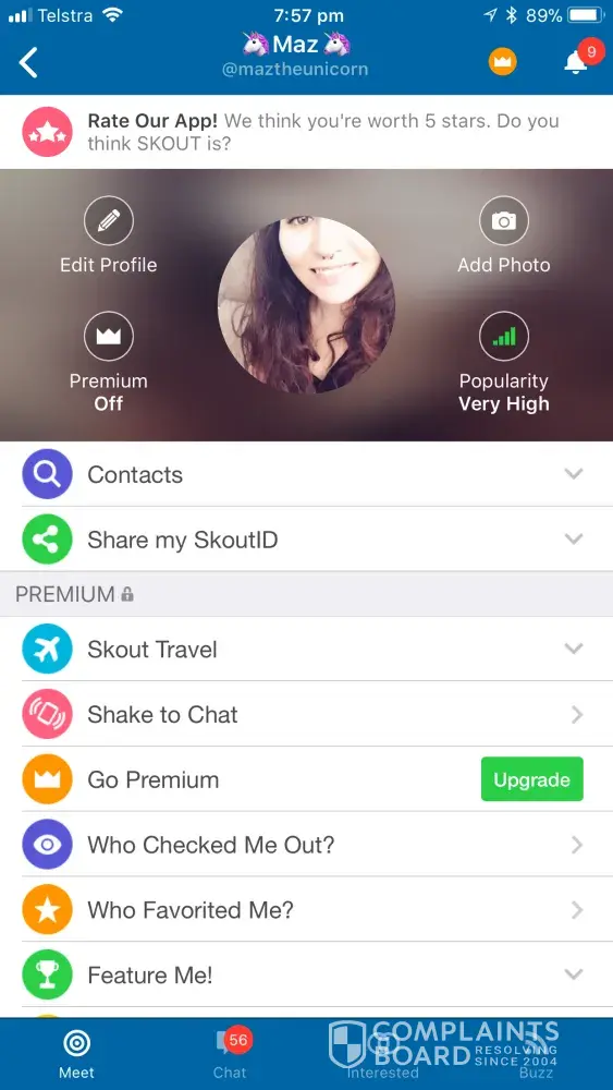 Skout earns a 1.2-star rating from 0 reviews and 242 complaints, showing that the majority of users are dissatisfied with social networking experience.