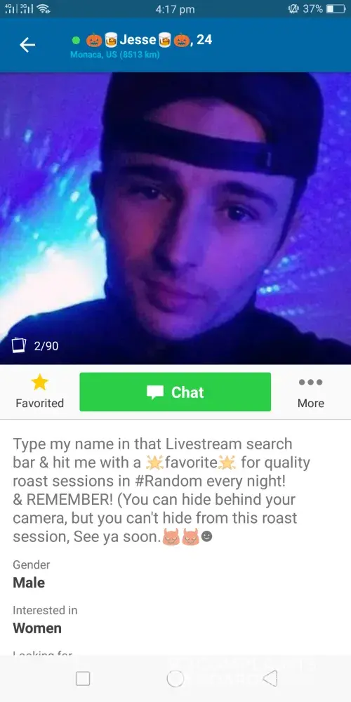 I'm a member on SKOUT . I just had a bad experience on live. I dropped in on someone's live stream and that person immediately began to harass me and insult me verbally because I'm Gay. Instead of being polite I was subjected to vile abuse. This mans profile is under the name of JORDAN GUIDRY from Lafayette, Louisiana USA. He is not the first one to insult and harass me simply because I'm Gay. This man JORDAN GUIDRY should be banned from SKOUT and meet me