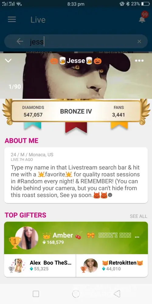 Please act urgently, the live stream user 'Jesse' has been conducting extreme hate speech and very concentrated bullying attacks towards vulnerable younger users. There have been multiple cases again young girl, one of which drove the victim to psycologically fragment and state we want to committ SUICIDE by the end of the stream, with ' Jesse ' laughing about it after to he viewers.