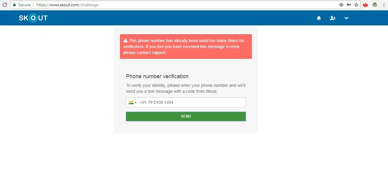 Hello I am from India I got a two messages on my phone about two different verification codes from SKOUT. I didn't create any email using my phone number on SKOUT. So I want to deactivate any account on SKOUT using the below given phone number(+[protected]). You can email me on this address [protected]@gmail.com about any enquiries about anything related to this.