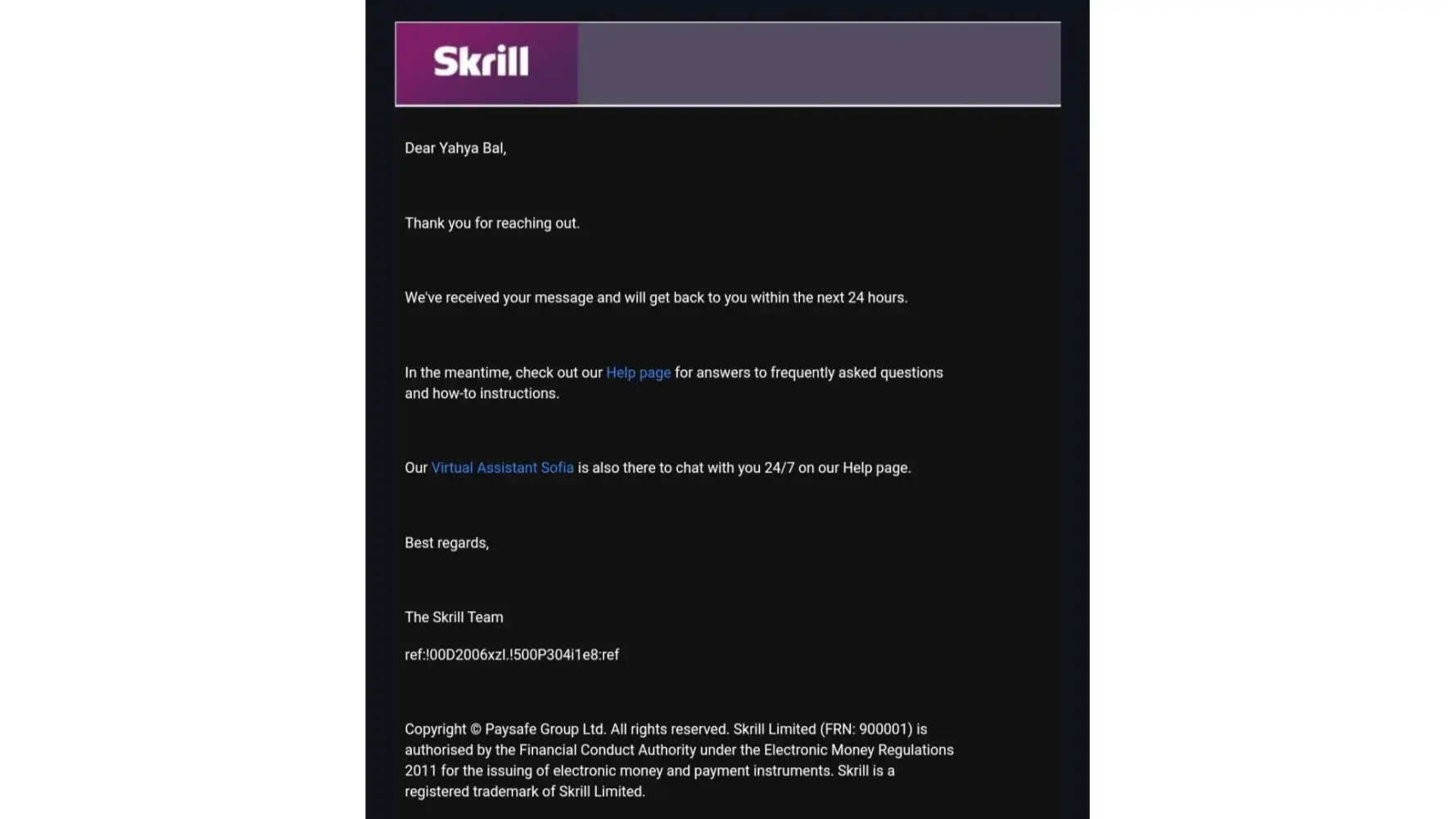 Dear Skrill Support,