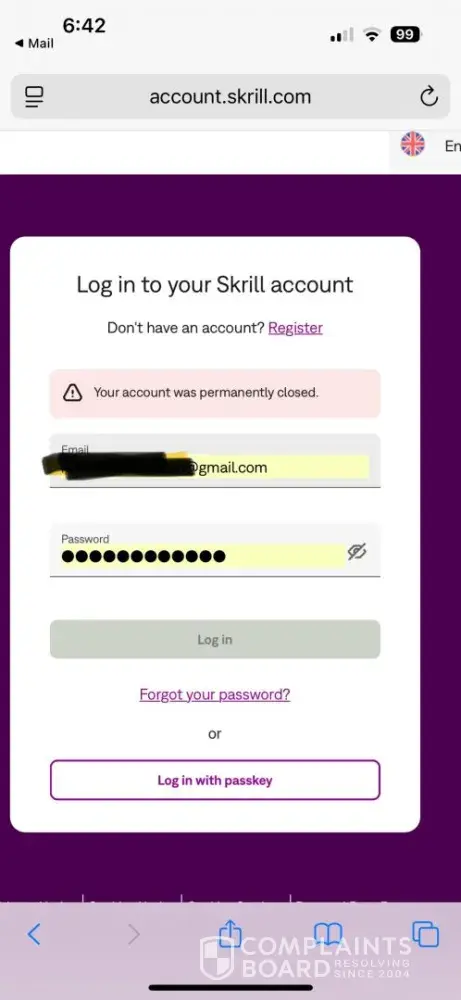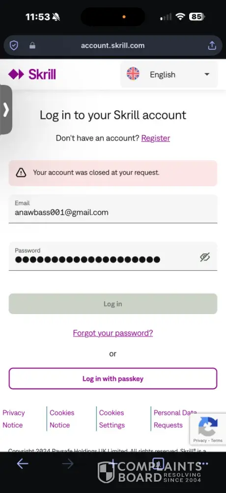 I tried every possible way to log in to my account, but it was all in vain. My money was gone, and there was no way to get it back. I felt cheated and betrayed by Skrill. They stole my money and closed my account without any explanation.