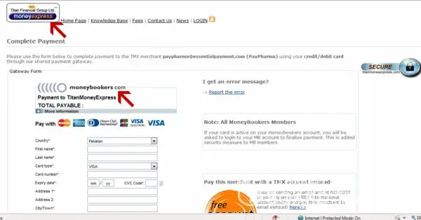 I will encourage my few customers to share their experience directly here to expose what titanmoneyexpress.com actually is. My integration is current active for showing all visitors to witness themselves & you can see moneybooker.com has been provided by titanmoneyexpress.com. Moneybooker.com do not allow direct accounts to online pharmacy that is why titanmoneyexpress charged me US$ 800 to play gimmicks in scripts so that moneybooker page comes in iframe under titanmoneyexpress gateway page.
