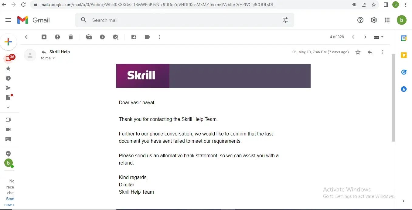 I hope you are well and safe. I'm complaining about Skrill Inc.