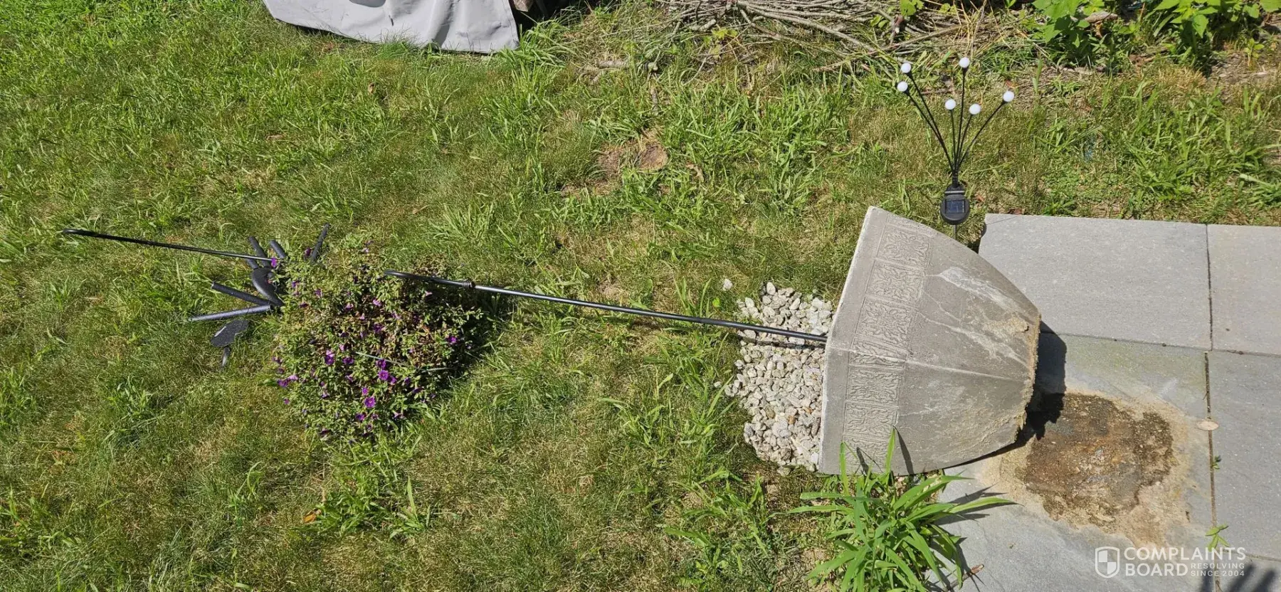 Patio umbrella broke free knocked over a heavy planter, and almost crushed my dog.
