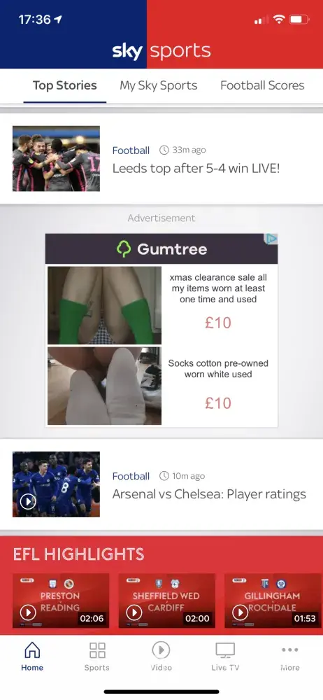 My 10 year old son was looking at football news and was confronted with the attached gum tree advert on your app. This is completely unacceptable and has caused me great concern. I have always used your App but I am now considering deleting this app if this issue is not resolved. I will also share this with trading standards/Offcom if this is not rectified. I expect an urgent response and an explanation as to why this has occurred.