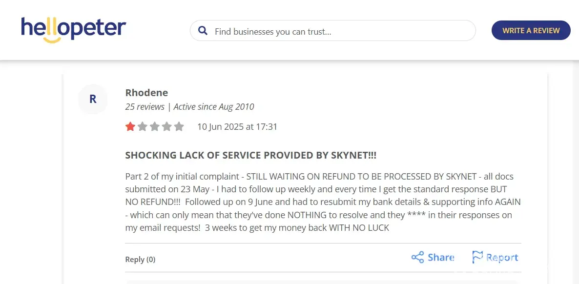 Read full complaintDisappointing Experience with Skynet Worldwide