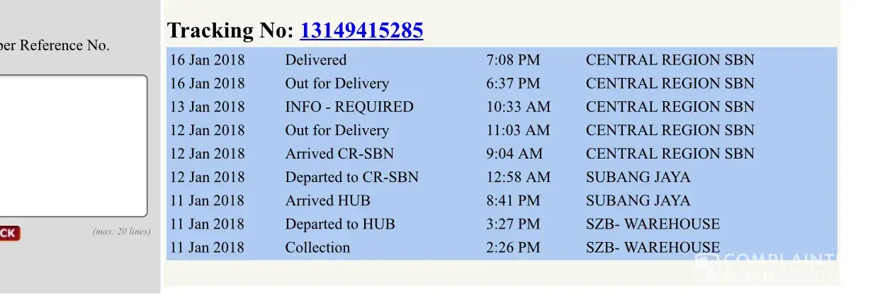 Today 23/1/2018, the courier boy reached my home when I not around, then he just gave the form my father signed n throw my parcel outside my house without any notice.