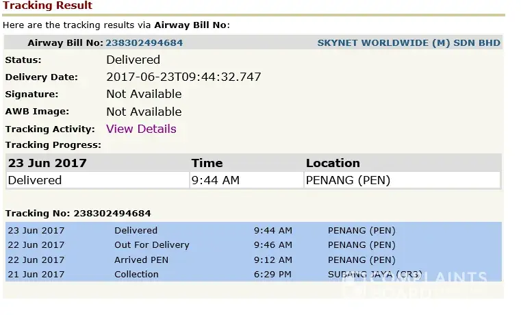 23 Jun 2017 Delivered 9:44 AM PENANG (PEN)
