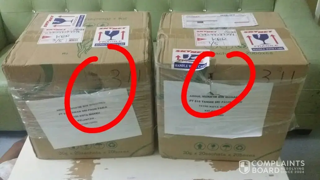At 19/12/2017 I go to skynet Batu Pahat to post 5 carton boxes to Kota Bharu, Kelantan.The items arrived by post at customer 21/12/2017.Reference tracking No. EH436165815MY.Costumer has been complaining 5 carton box is damaged.I am not satisfied with the delivery by courier skynet.I want to claim compensation on the damage of the item due to the losses I have experienced.In the absence of any response from the skynet, I will make a police report.