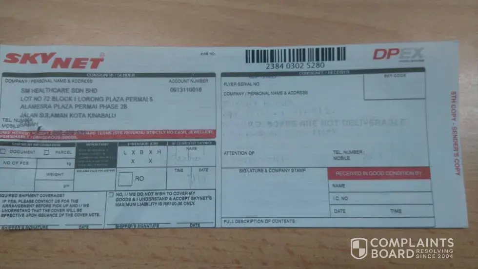 And the staff of skynet seremban claimed that they called the receiver to get the documents but she did not pick the phone(liars)