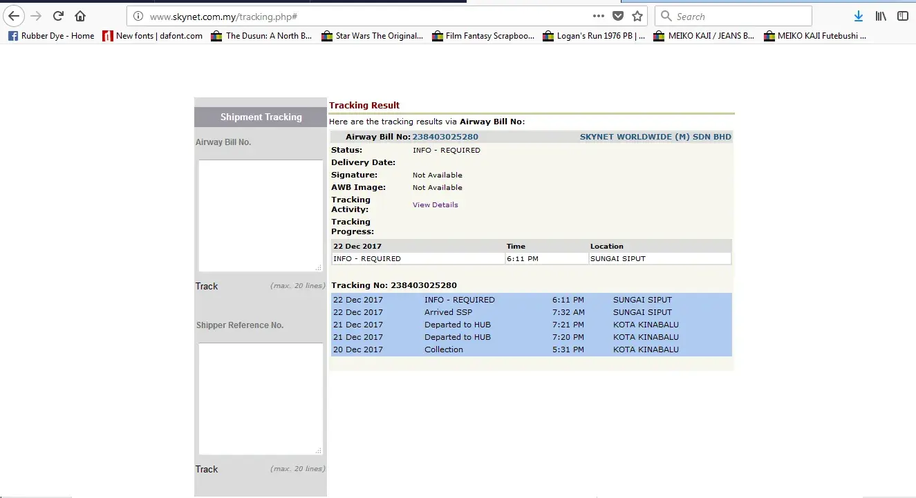 I check the skynet tracking system, the package already arrived at location on the 22 Dec 2017