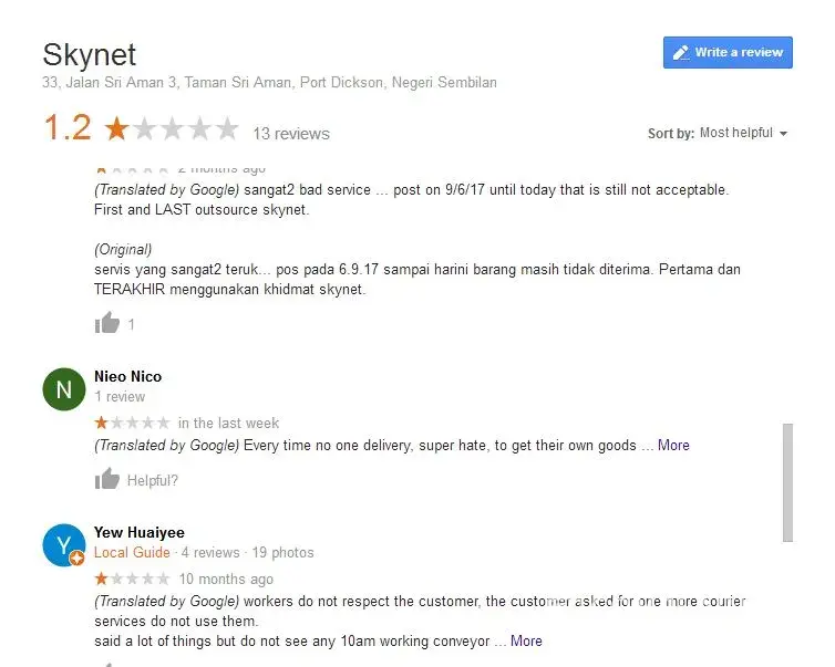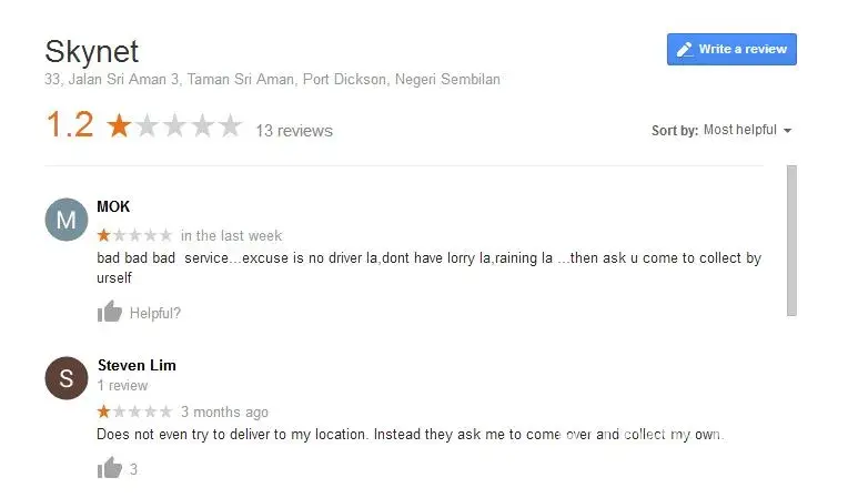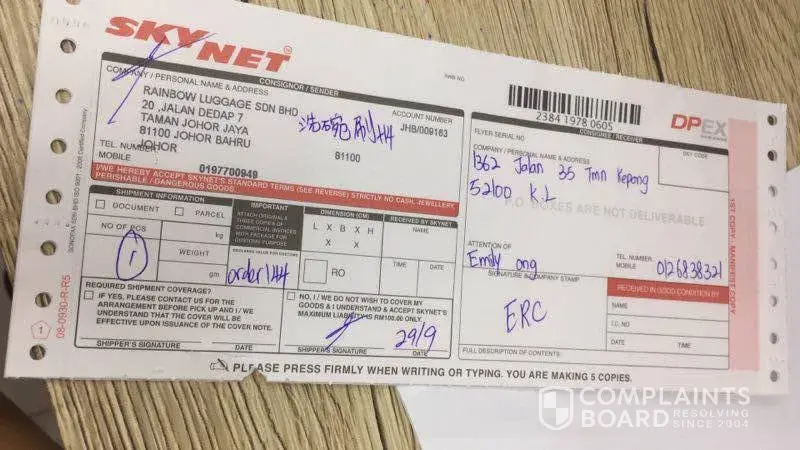 Skynet Worldwide Express I am complaining about the delivery service by skynet bukit beruang melaka.
