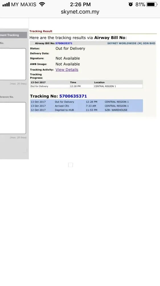 My parcel already reached at seremban skynet office branch... but keep on delayed. The Status of tracking no. never updated... keep on chasing to their staff, jz gv me bad reason which is my area too far and my parcel is small size, so the delivery man no go there... excuse me, i had pay your delivery fees, suppose can receive 3 working days... delayed until one week still haven't received.. this is not an excuse..