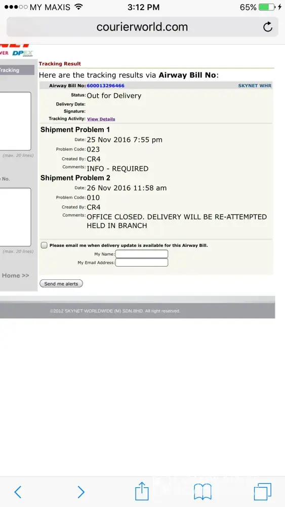 This is not the first time this unethical company caused me issues and yet i had no choice to avoid them because i cannot control which courier companies to use for the online sellers. I never received my parcel and the tracking system showned delivered, with no consignment note attached. I have no idea who took my parcel but i am very sure they did not deliver to my office because me and my colleagues were there for the whole day. This courier service provide the worst service in Malaysia and i strongly advise you to avoid using skynet at all cost unless you want to deal with their terrible services. Not only their official website is broken and not fully functional, check the contact form, their customer service is one kind, they treat you as you've owe them million dollars.