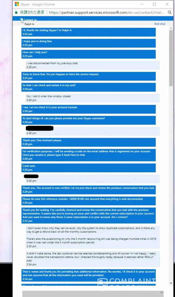 On Saturday, May 7, 2016 7:59 AM, Skype Customer Support wrote: