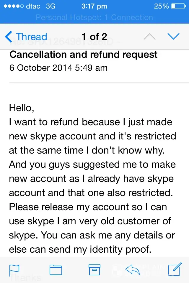 I am using Skype since 4-5 years and suddenly few months ago my account has been restricted even I don't know the reason even I didn't login my account somewhere accpet my mobile or computer. I spoke to the customer care so many times but they didn't do anything and I sent them email again few days ago than they replied me that I should make new skype account when I made new skype account and I redeemed my voucher for calling my account restricted after 2 min and can't make any call and can't even refund the money it was huge money just $2.50 voucher but its still money and facing so many problem. I am sending you all the pictures of emails conversations and my both account pictures which I have and both have been restricted.