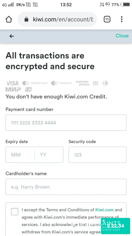 I was searching a ticket and paid my mistake. I contacted kiwi.com and they refused to refund me fully.