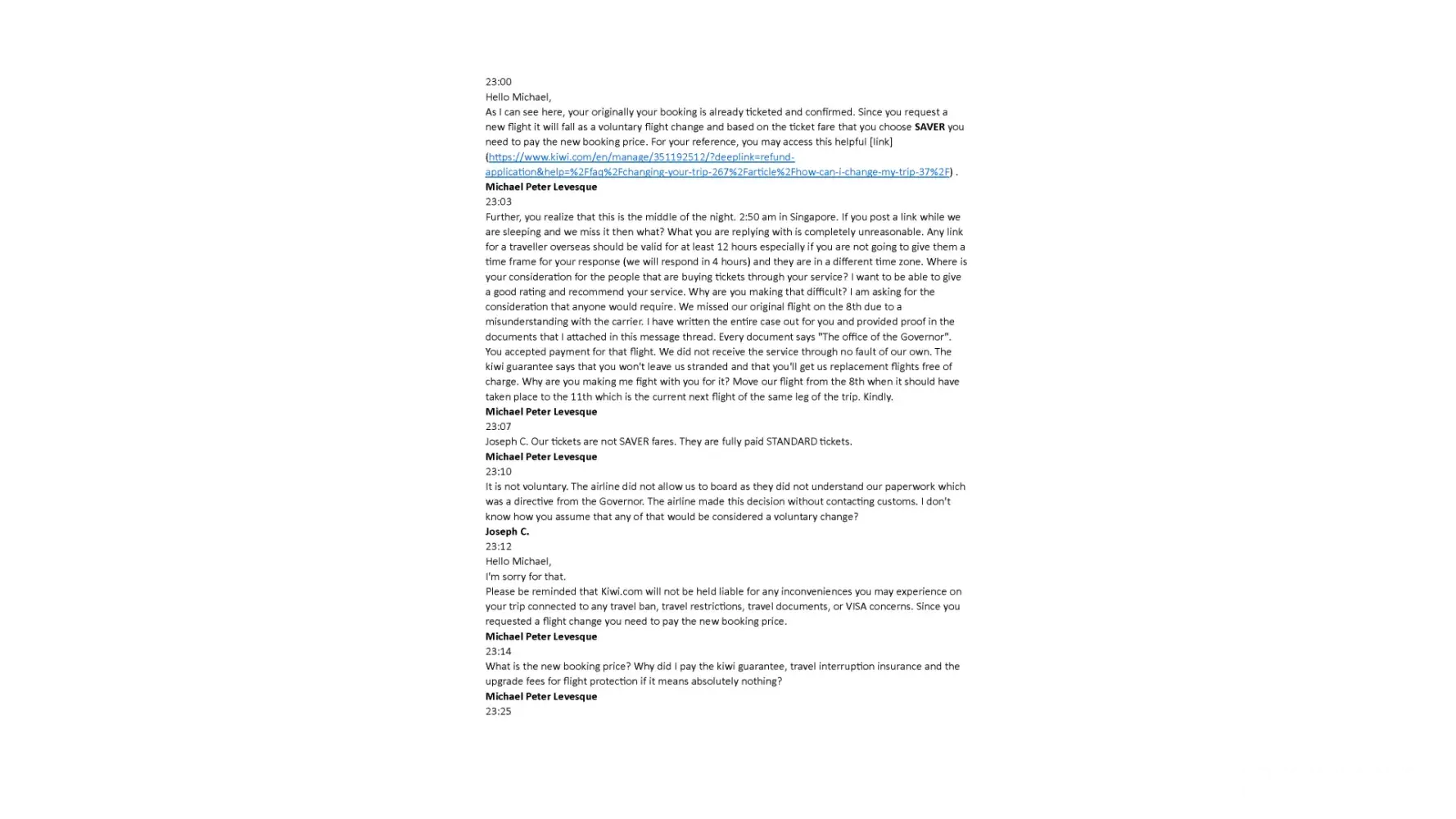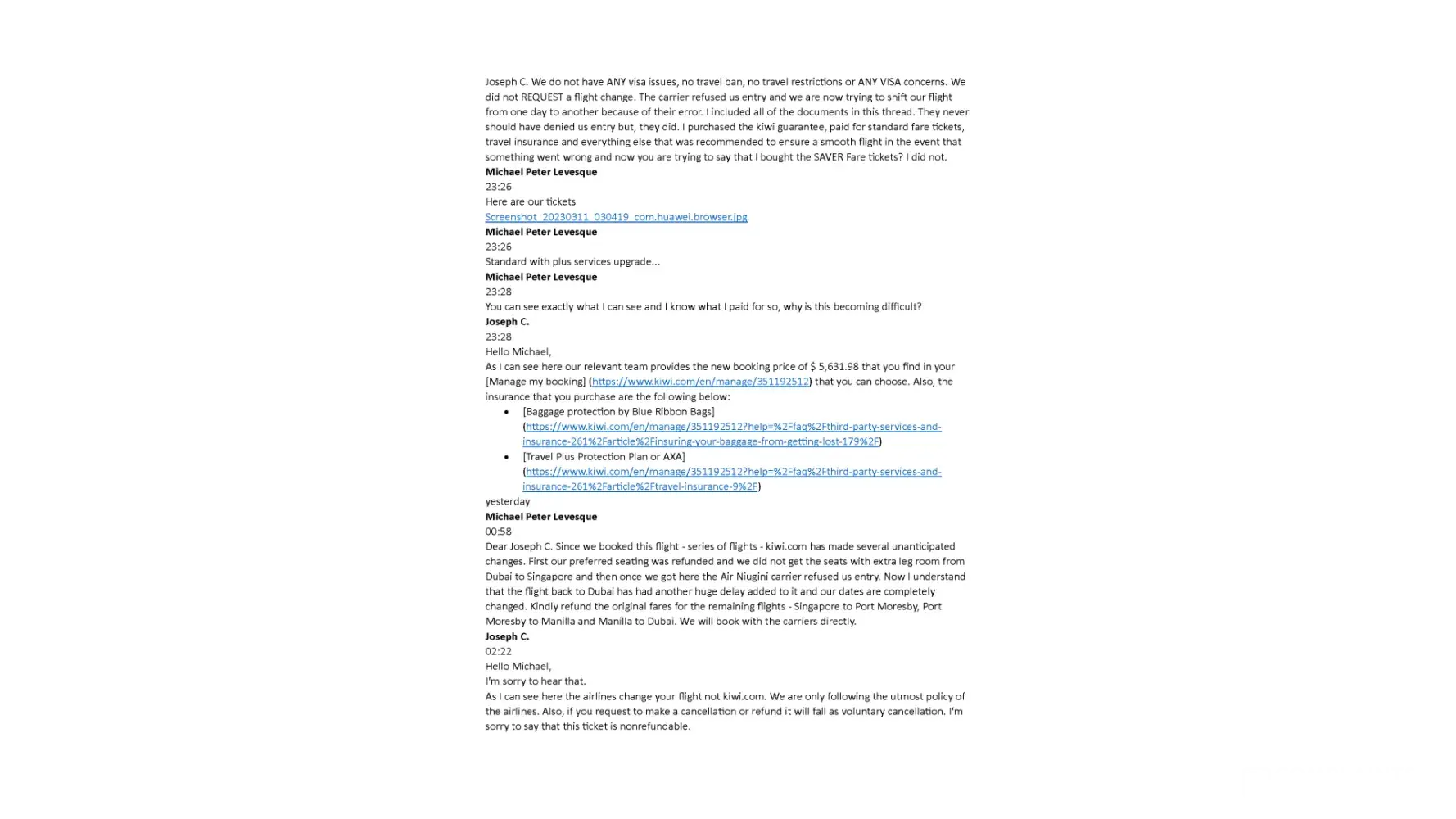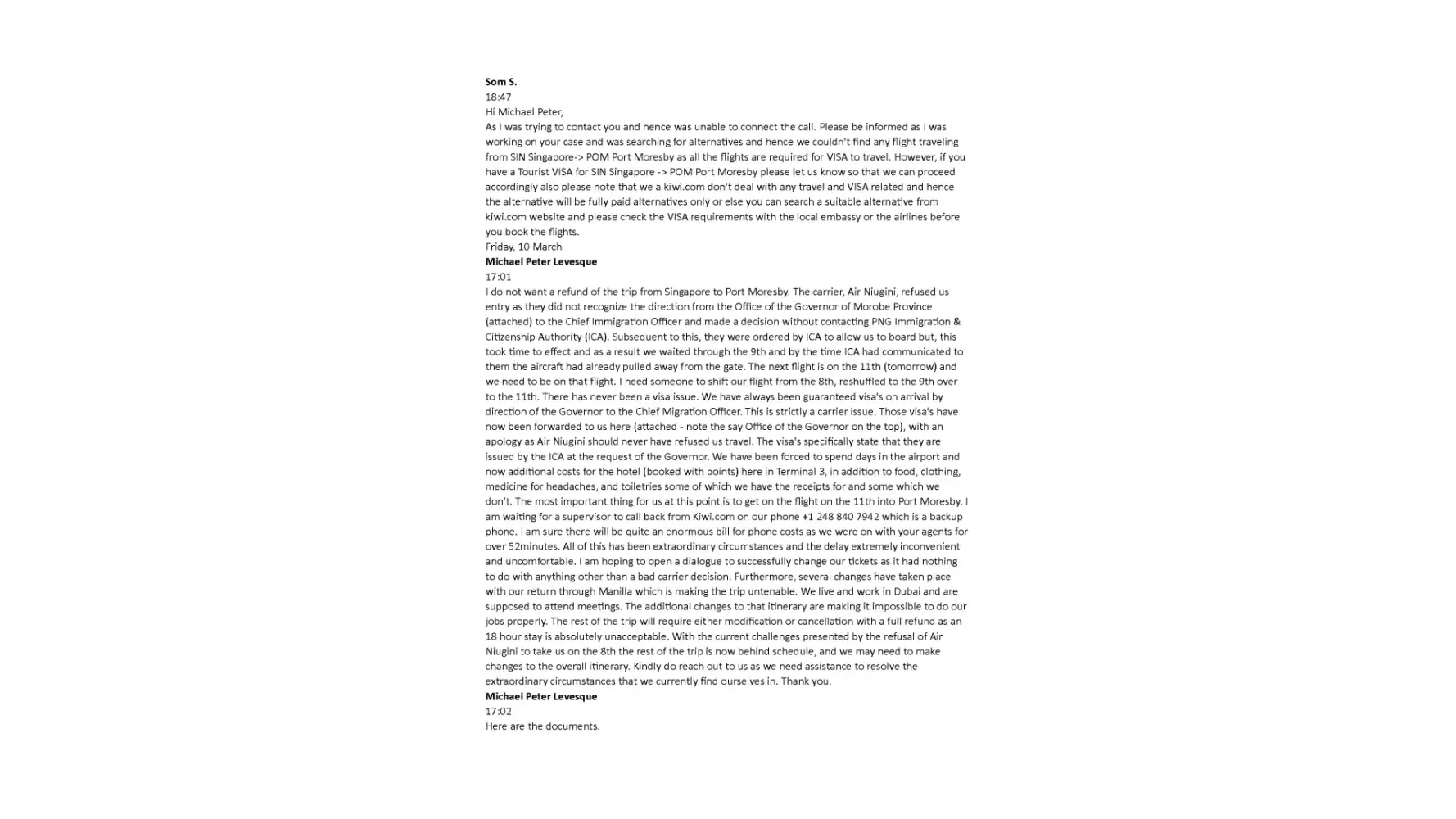 In Singapore we ran into a problem. Air Niugini would not allow us to board. The airline made the decision - not Immigration. We contacted kiwi and they refused to change the flight even after we bought the kiwi guarantee, the travel interruption insurance, etc. Kiwi agents ultimately cancelled our flights when I asked for a refund ...